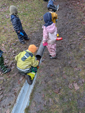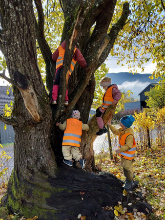 Å leika med vatn og sand, fangeleik og rolleleik favorittar i uteleiken. Ein dag i veka er Mikkel rev på tur i nærområdet.